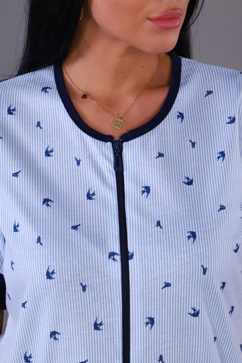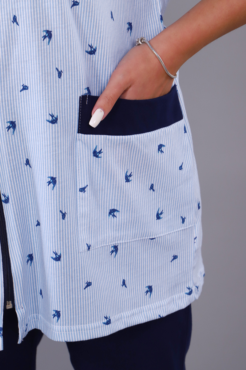 Женский костюм из кулирки футболка + бриджи. Футболка из набивной ткани на молнии с накладными карманами, короткие рукава с манжетами, бриджи из однотонной ткани. Идеальный костюм для отдыха дома, на даче.